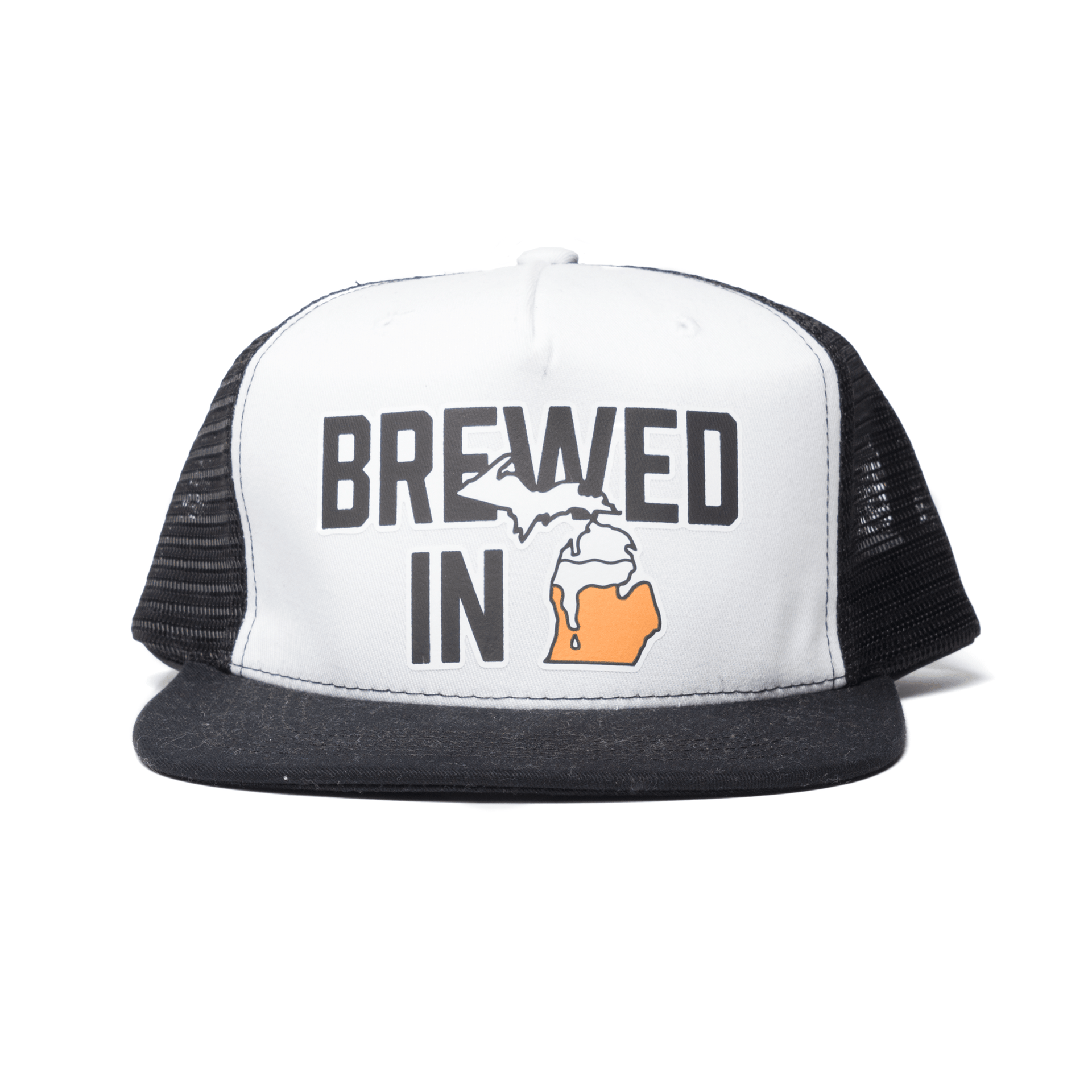 There's nothing quite like a good hat. This hat is an ode to the midwest. They've protected the heads of generations. True americana. Mesh back, snapback, screen printed with our Brewed in Michigan design on the front and a sewn tag on the backside.