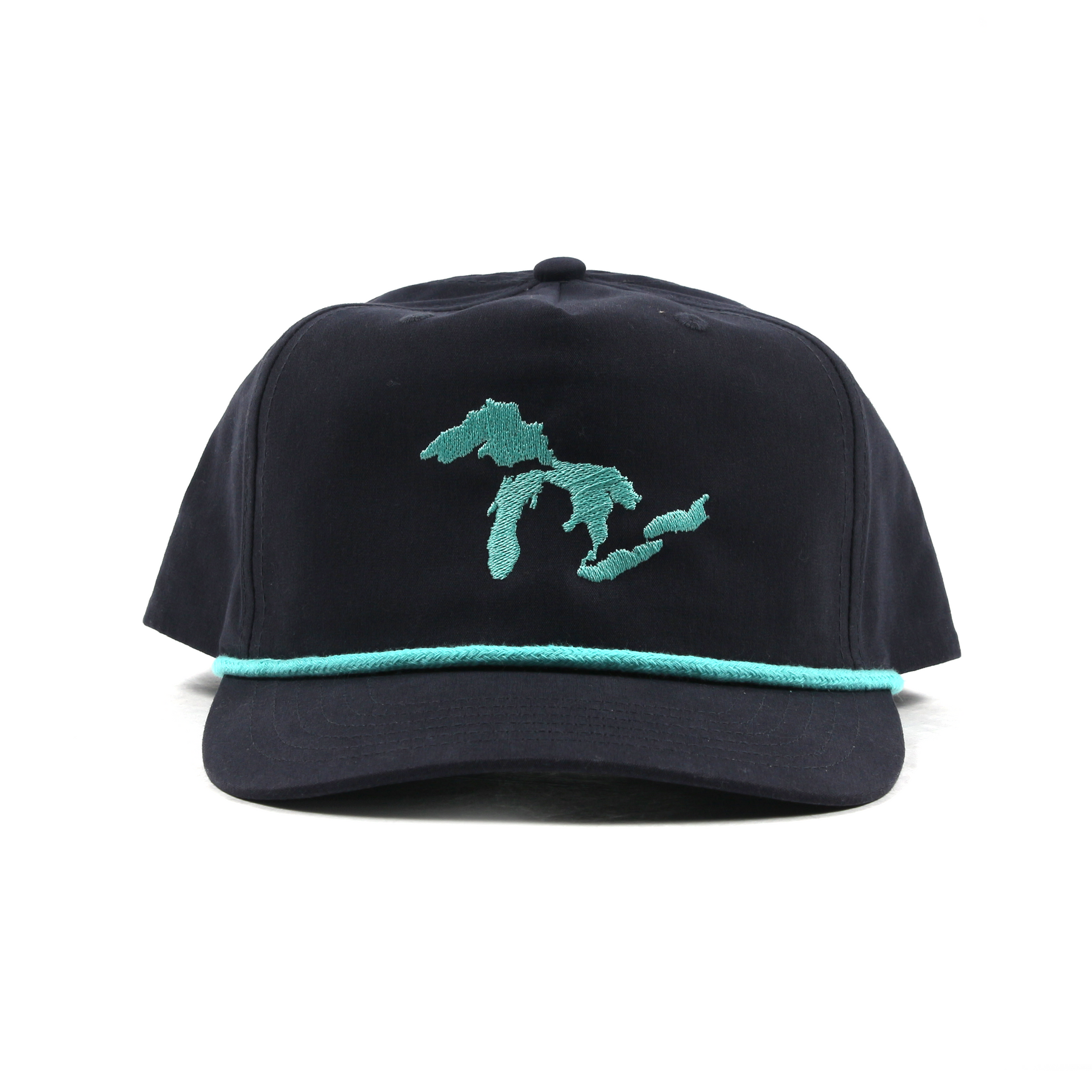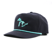 Stay cool and stylish with our Great Lakes Rope Hat! This semi-structured golf hat features a teal & white color combination, perfect for a classic old-school summer look. The lightweight fabric and snapback enclosure make it easy to wear all day.