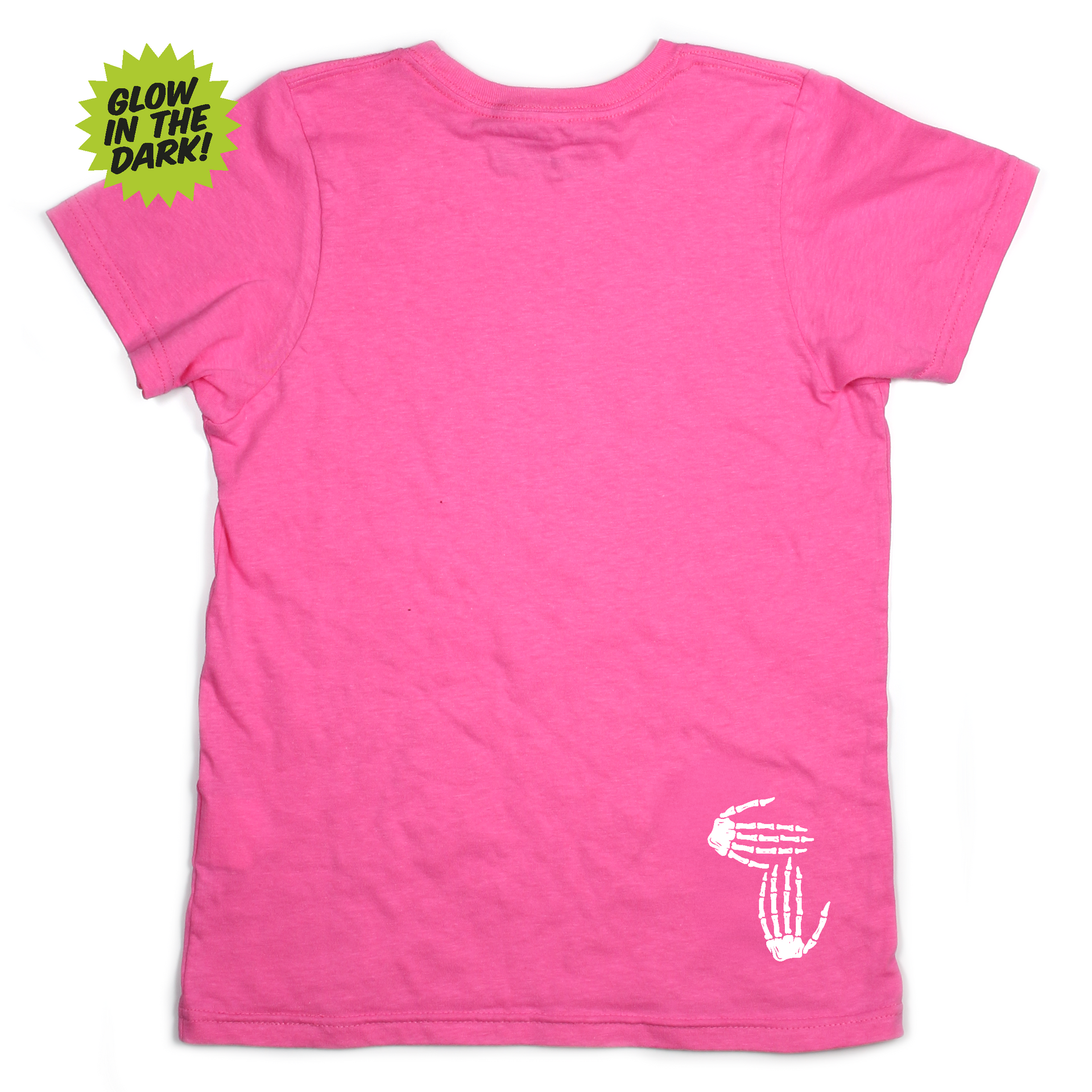 A spooky fun play on our iconic logo printed on a pink tee with Glow-in-the-Dark ink! Pick up this limited edition Skeleton Hands tee to be the hit of all your Halloween festivities before they disappear!