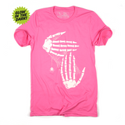 A spooky fun play on our iconic logo printed on a pink tee with Glow-in-the-Dark ink! Pick up this limited edition Skeleton Hands tee to be the hit of all your Halloween festivities before they disappear!