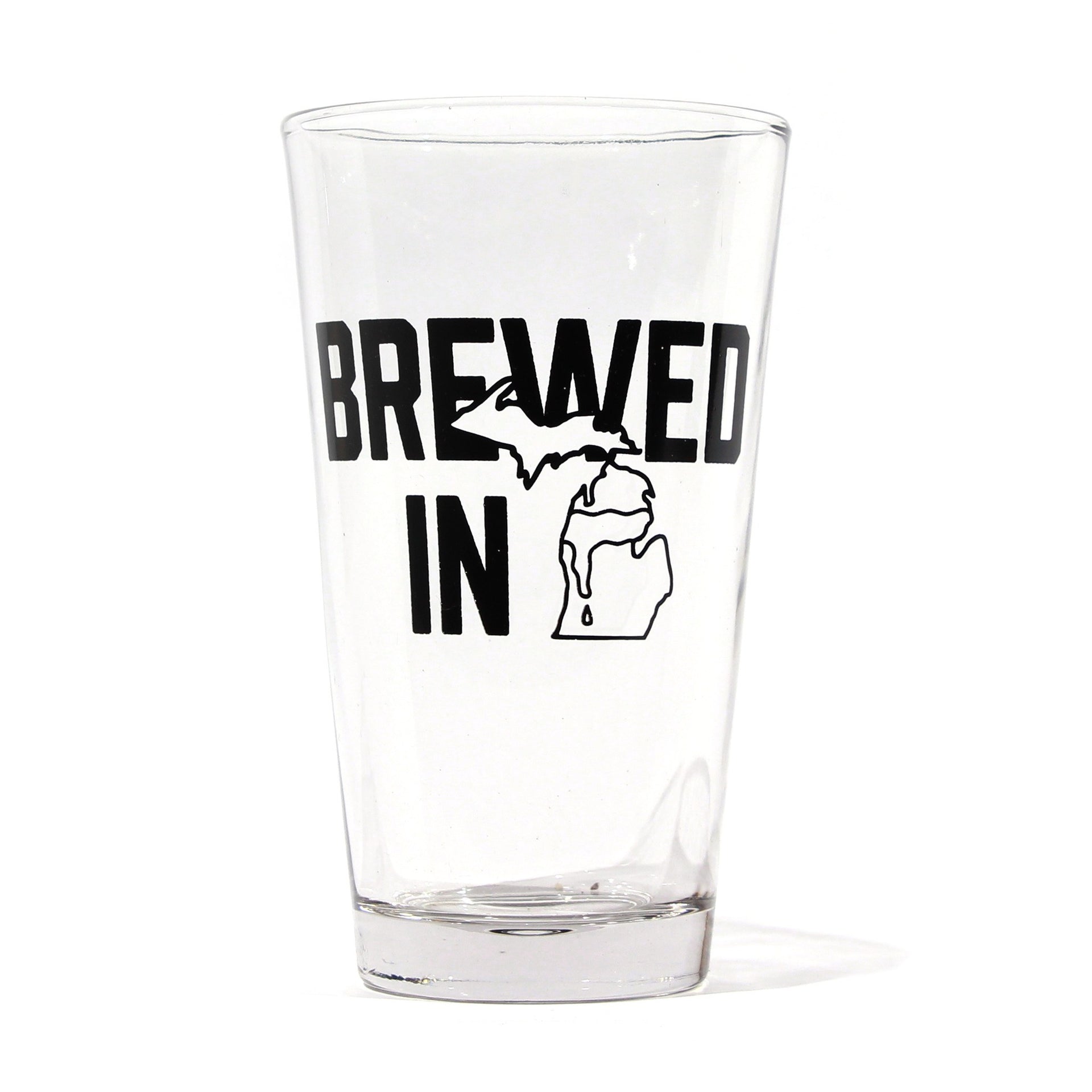 Treating yourself to a fine crafted beer from one of Michigan's 112+ breweries? You can't just grab any old glass from the cupboard. That liquid gold in your hand needs to carefully rest in one of these USA made and Traverse City printed "Brewed in Michigan" pint glasses. Featuring a black BIM logo on the front everyone around will be assured that you know excellence when you're drinking it. Pick up a couple (or 10) for your house today.