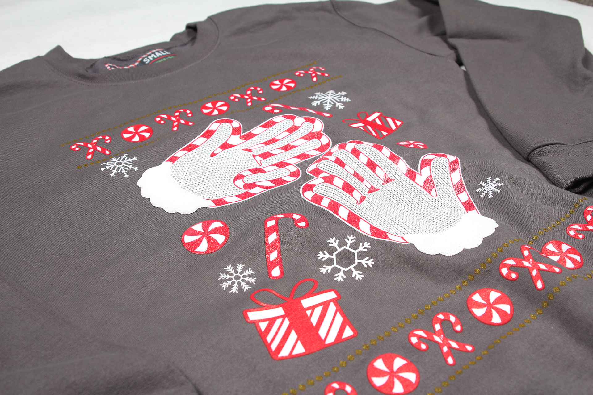 This year's holiday must-have just arrived! Rock our iconic Michigan Hands logo reimagined with festive candy canes, complete with dimensional puff ink cuffs that add serious texture and charm. The sparkly white, red, and gold color combo catches the light beautifully, making you the most stylish person in any Christmas gathering. Comfortable enough for all-day wear at holiday parties, family dinners, and seasonal celebrations. Available in sizes for the whole family, so everyone can spread the joy together!