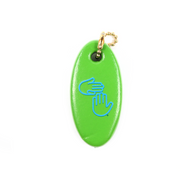 Lime Green vinyl coated keychain with our classic Michigan Hands logo in blue.