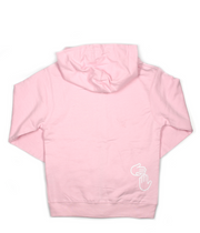 Light Pink hoodie with white soft hand print.