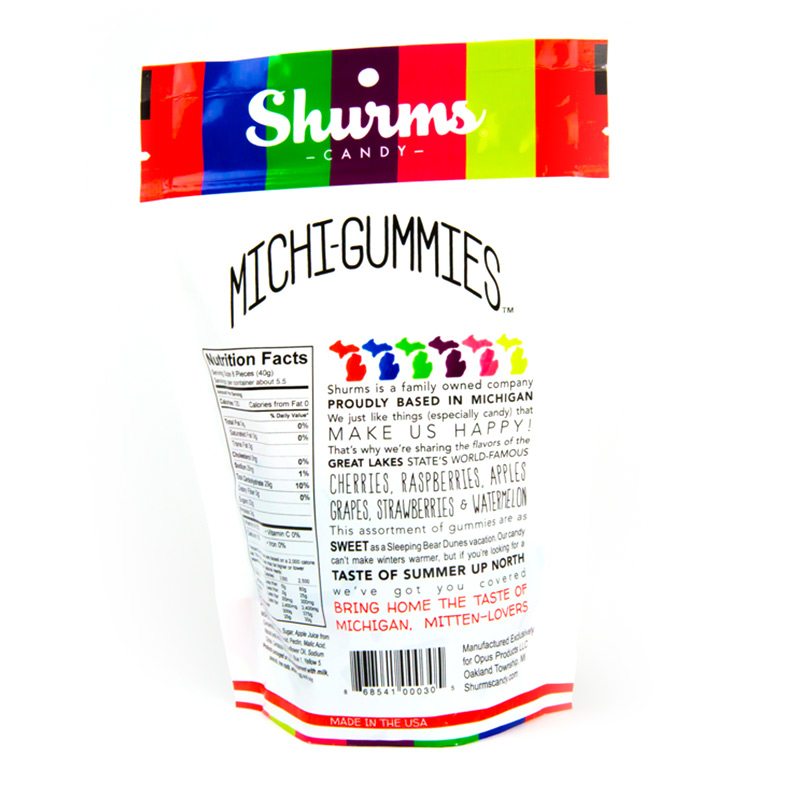 8 ounces of the best gummy candy you will ever try – and it’s in the shape of our great state (both upper and lower peninsulas)! Each package contains all 6 fruit flavors of Michigan: cherry, raspberry, apple, grape, strawberry and watermelon.
